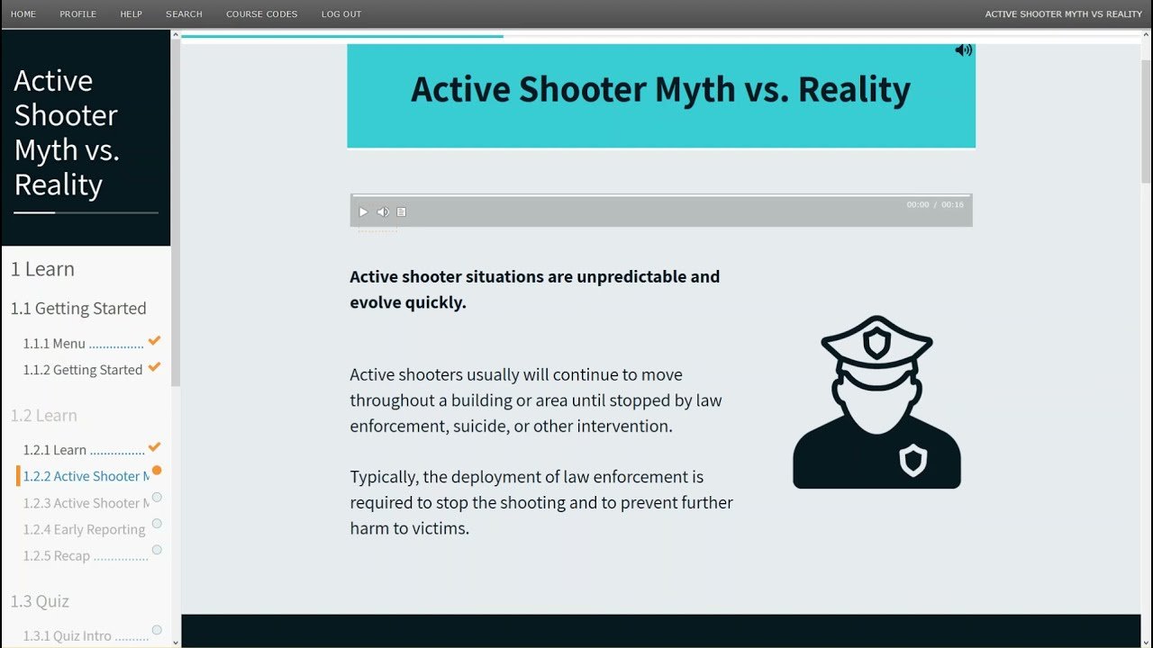 This online Active Shooter Myth vs Reality course covers the following topics: