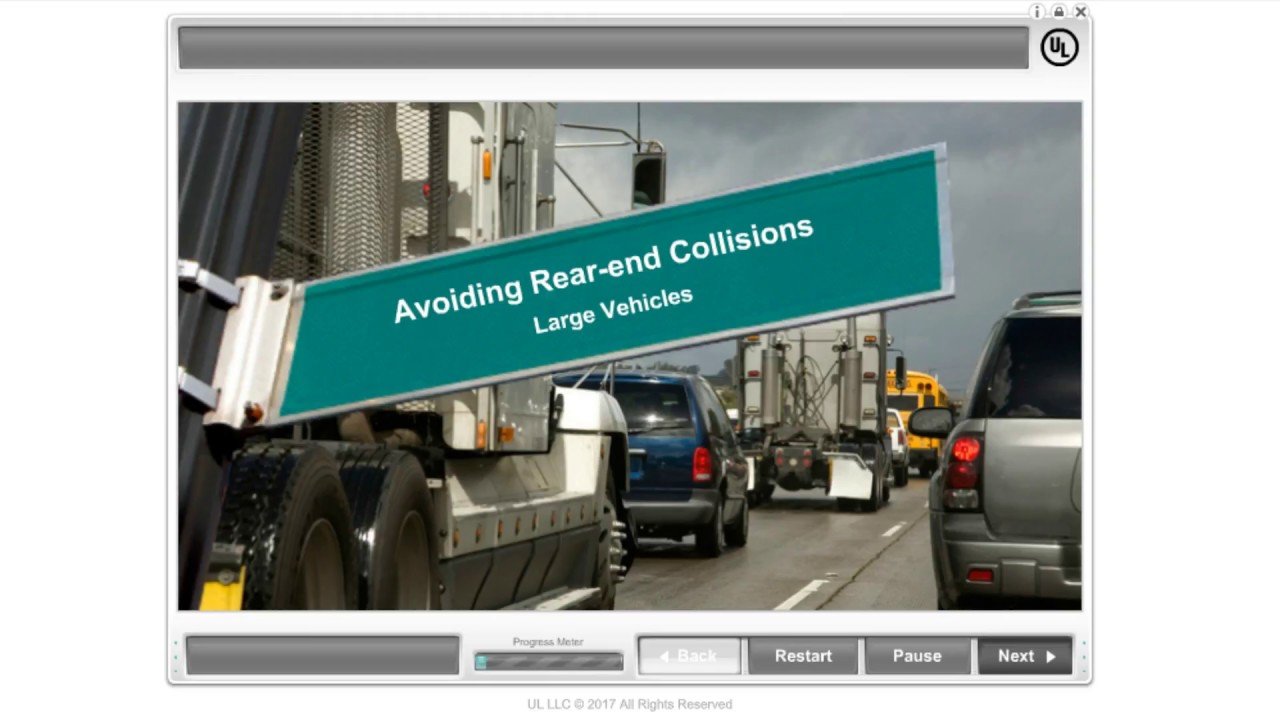 This online Avoiding Rear-End Collisions for Large Vehicles course is designed to provide an understanding of common causes of rear-end collisions and what large vehicles drivers can do to reduce the risk of being involved in one.
