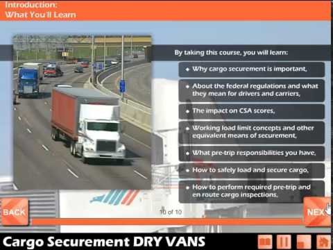 If cargo is not properly secured in a dry van, the consequences can be serious. This online Cargo Securement for Dry Vans course provides best practices designed to help prevent revenue loss, roadside delays, increased insurance rates, injuries, and damage to cargo, vehicles and property.