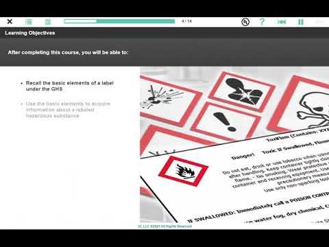 This online Hazard Communication – Labels course is designed to provide an understanding of the basic elements of a label under the GHS and the basic elements to acquire information about a labeled hazardous substance.