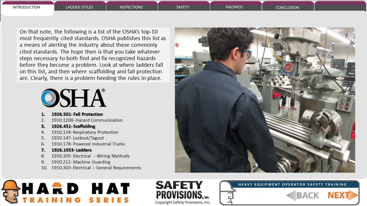 This is an OSHA-Compliant Training Class for Ladder Safety (covers portable, fixed, specialty and job-made ladders). I-CAB Recognized. This course satisfies OSHA’s requirements for the classroom training. Quiz questions along the way prepare you for the final written exam. Upon completion, you will be able to print your certificate and a wallet card, as well as a customizable form which can be used by employers as needed to observe the worker’s application of the principles discussed during the training.