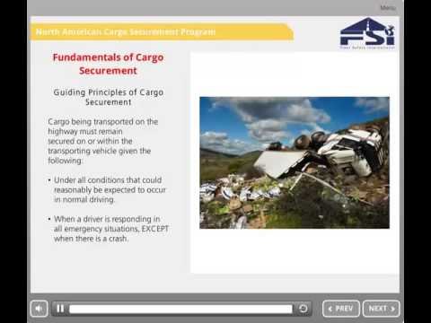 This online North American Cargo Securement Core Program is designed to explain the fundamentals and general requirements of cargo securement, based upon the National Safety Code for Motor Carriers (Standard 10). After completing this course, an understanding should be gained of the cargo securement standard, requirements of carriers and drivers, and general cargo securement requirements including the securement system, minimum strength requirements, tiedowns and edge protectors, and cargo placement.