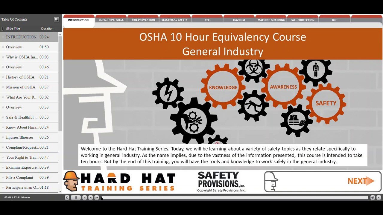 This online OSHA 10 Equivalent – General Industry Safety Topics include but are not limited to: