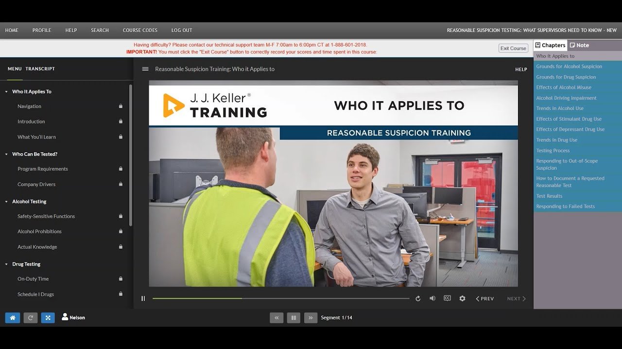This course is designed to help all persons designated to supervise Commercial Motor Vehicle (CMV) drivers gain confidence in regards to their reasonable suspicion testing responsibilities. Specifically, it helps fulfill the Reasonable Suspicion/Alcohol & Drug training requirements in 49 CFR Part 382.603 by: