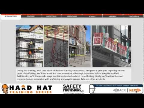 This online training course for Scaffolding Safety will help employers and operators complete OHS-compliant operator safety training and properly record it.This online course provides an introduction to the equipment, a section on anatomy, erection and dismanlting, inspections, hazards, safe operation, and more.