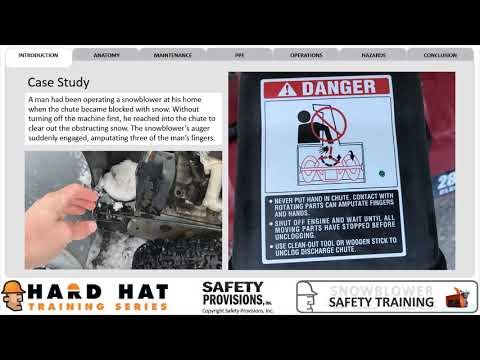 Our snowblower training course is OSHA compliant, and our online version fulfills OSHA’s classroom training requirement. This presentation includes intermittent practice quiz questions to prepare for the final written exam included with the course. In addition to the written exam, this course also includes a checklist for employers to use when administering a practical exam as required by OSHA.