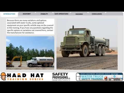 Our Water Truck training course is regulation compliant, and our online version fulfills classroom training requirements. Each class contains sections on anatomy, stability, safe operations, and hazards. During this training, we will be taking a look at the various components of a water truck and how they work. We will go over elements of the pre-shift inspection and discuss its importance to safe operations. We will also talk about stability principles that will help operators avoid rollovers. Then, we will look at safe operating procedures, including how to fill the tank, deploy spray, travel with a full tank, and operate the hose. We will discuss the PPE operators need to wear. Finally, we will touch on common hazards associated with water truck operations and how to avoid them.