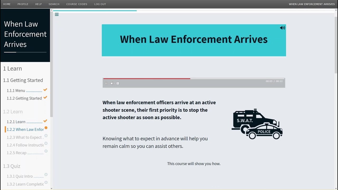 • Describe actions to take in an active shooter situation when law enforcement officers arrive
